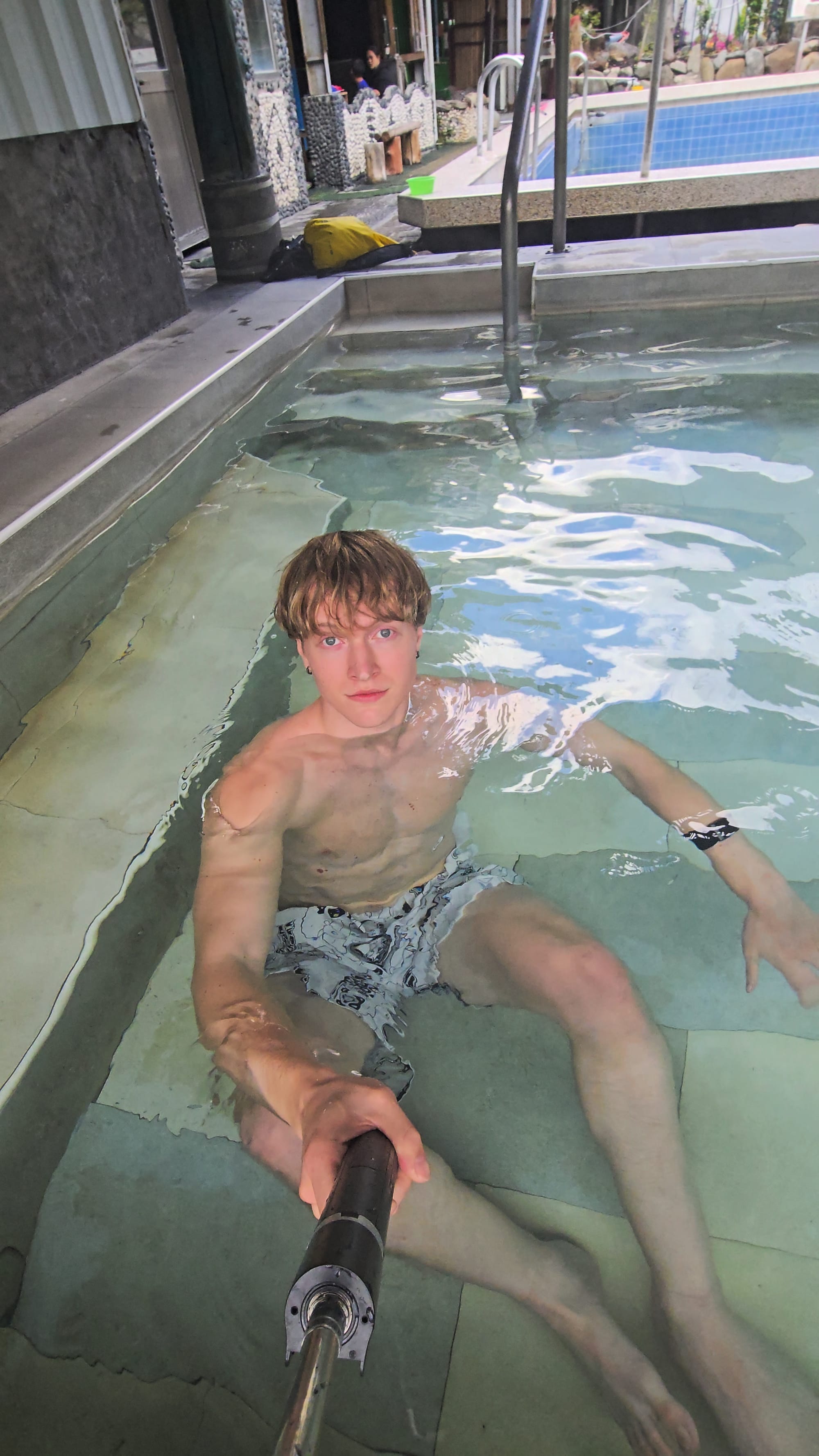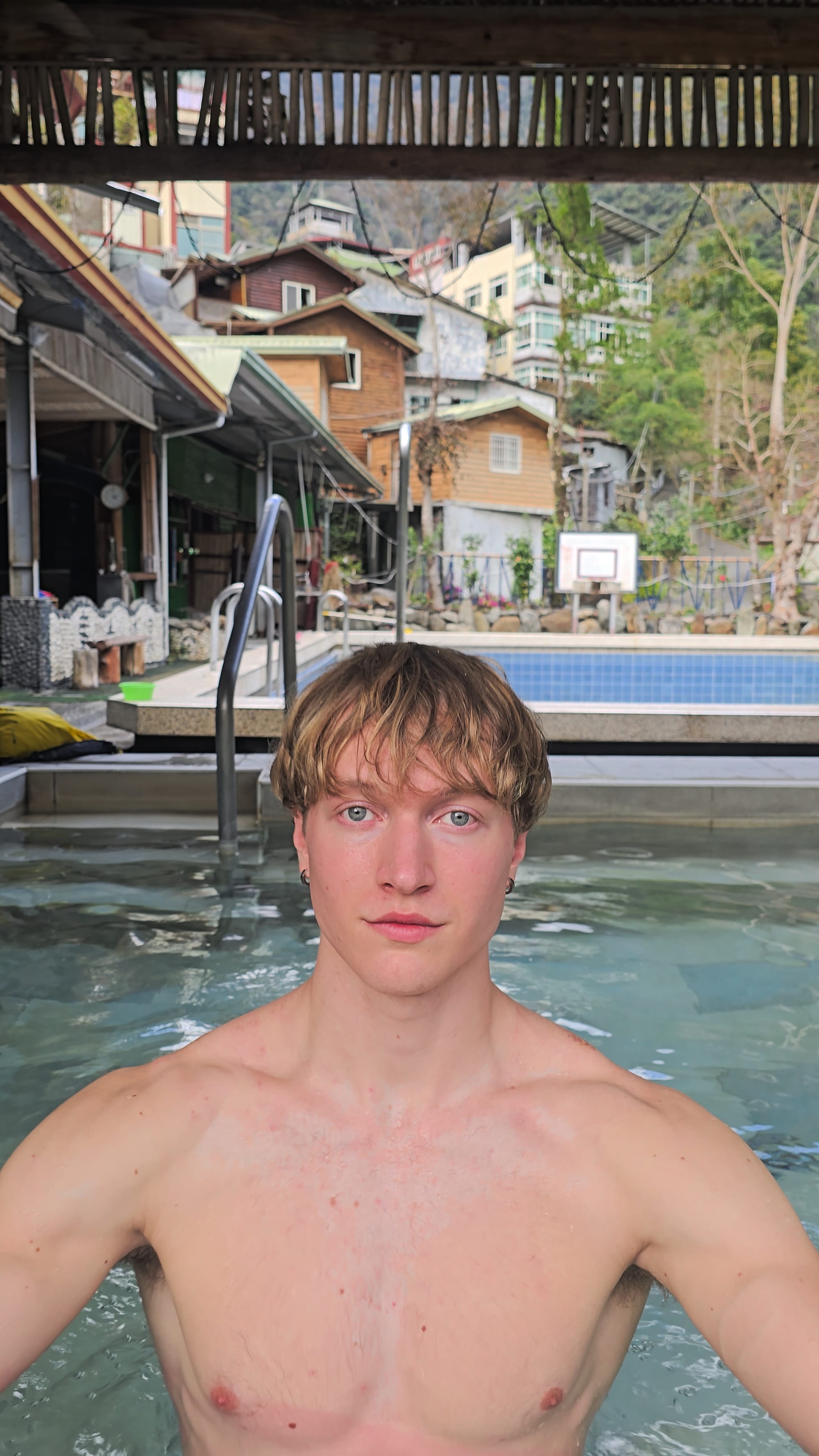 I soak in the hotspring of Dongpu, in the Nantou region of Taiwan.